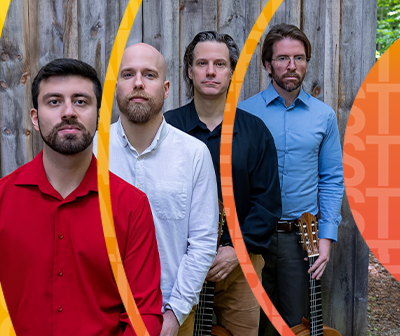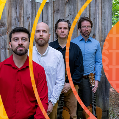 The Canadian Guitar Quartet returns to Chamberfest with a rich and vibrant program inspired by musical traditions from around the world. Journey through the sultry Bossa Nova rhythms of Brazil, the soulful folk melodies of Chile, and the rollicking charm of traditional music closer to home. Featuring virtuosic arrangements by Ottawa’s own Louis Trépanier, this morning’s concert offers an exquisite palate of harmonies and textures. Renowned across North America and beyond, the Canadian Guitar Quartet remains a true hometown treasure for Ottawa audiences.