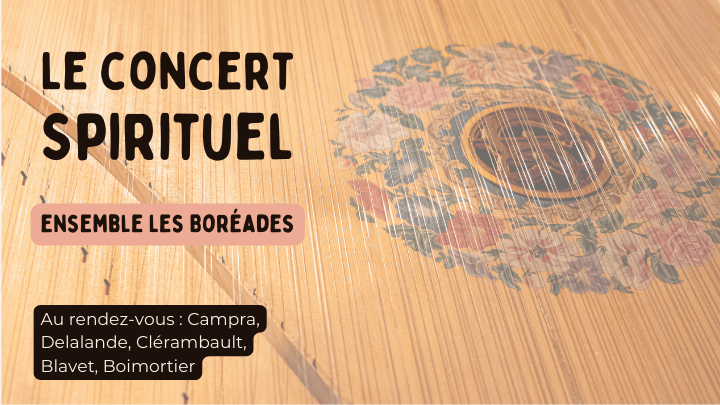 The Boréades return this time with a selection of French composers as we will discover them at the SPIRITUAL CONCERT, the first public concert institution worthy of the name, in Paris in the 18th century. To be performed : Campra, Delalande, Clérambault, Blavet, Boismoirtier.