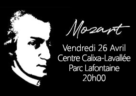 Réalisé en partenariat avec la compagnie 5600˚K, le spectacle Mozart est mort! Vive Mozart! est une revue musicale qui met en scène trois chanteurs (Geneviève Lenoir, Simon Chalifoux et Yves Lortie) accompagnés d’une pianiste (Janie Caron). Il comporte des effets visuels et des bandes sonores, le tout dans le but ultime de présenter le répertoire du grand compositeur.