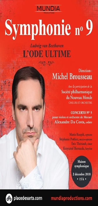 Mundia Productions présente la 9e symphonie de Beethoven, sous la direction de Michel Brousseau, avec la participation de la Société philharmonique du Nouveau Monde (Choeurs et Orchestre).