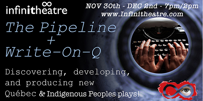 Infinithéâtre proudly presents The Pipeline, our annual public reading series of plays that are in coming down our development pipeline. Audience feedback takes centre stage as Infinithéâtre invites the public to catch the excitement and share their views on plays that we are considering for production in future seasons. The winning play of our Write-On-Q! playwriting competition is always featured in this readings series.