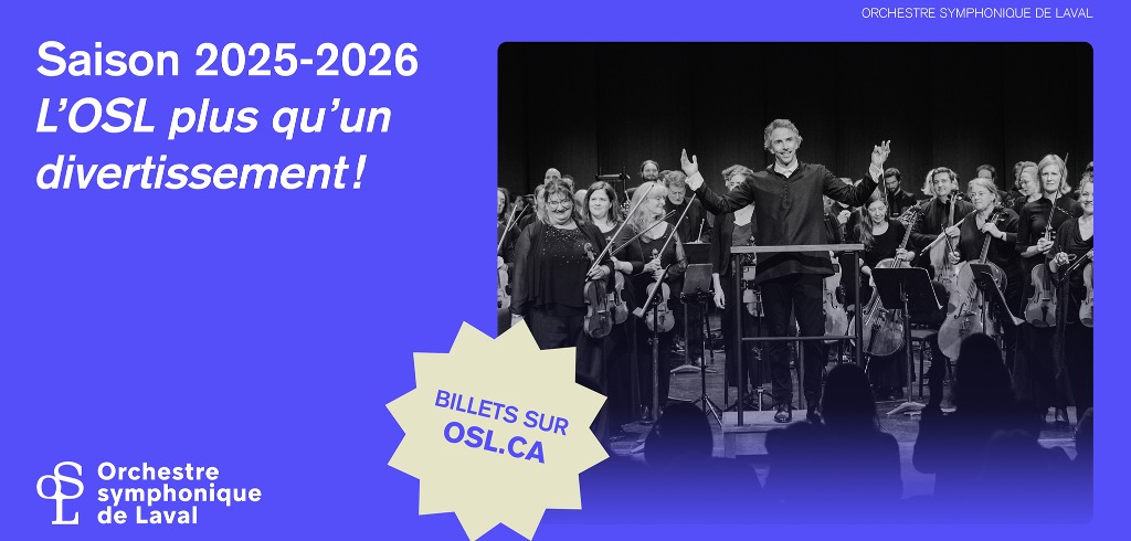Laval, le lundi 28 juillet 2025 – L’Orchestre symphonique de Laval (OSL) est fier de dévoiler sa programmation 2025-2026, marquant à la fois son 40ème anniversaire et les débuts de son nouveau directeur artistique et chef principal, Adam Johnson, dans une saison riche en célébrations, en retrouvailles et en grandes œuvres du répertoire symphonique.