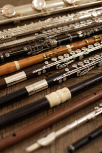 Yet, models often raise more questions than answers. Putterman notes that “there were way more instruments that existed than we have modern copies of.” Flutes have undergone far greater transformations, unlike the violin which, barring some minor changes, has remained essentially the same since the 16th century. Aleks Schürmer, co-director of ADLF, explains how flutes with new technical capacities were always outshining last year’s model. “Most wind instruments,” he explains, “are more akin to an iPhone—every year we add more megapixels, better battery life. We add some features that makes it look like last year’s model is a little bit out of date. … A composer might realize, ‘Now we can do this,’ and the previous year’s instrument no longer serves that function.”