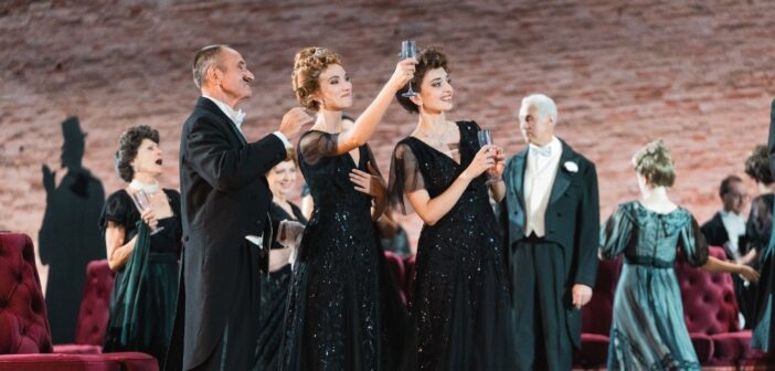 The operetta La vedova allegra (Lehár’s The Merry Widow in Italian) proved to be the festival’s most popular attraction, due to a dearth of operetta in today’s Italy and the persistent popularity of the art form. The usually inspired French director Arnaud Bernard envisioned the operetta as a prolonged but nonetheless visually appealing dance revue.