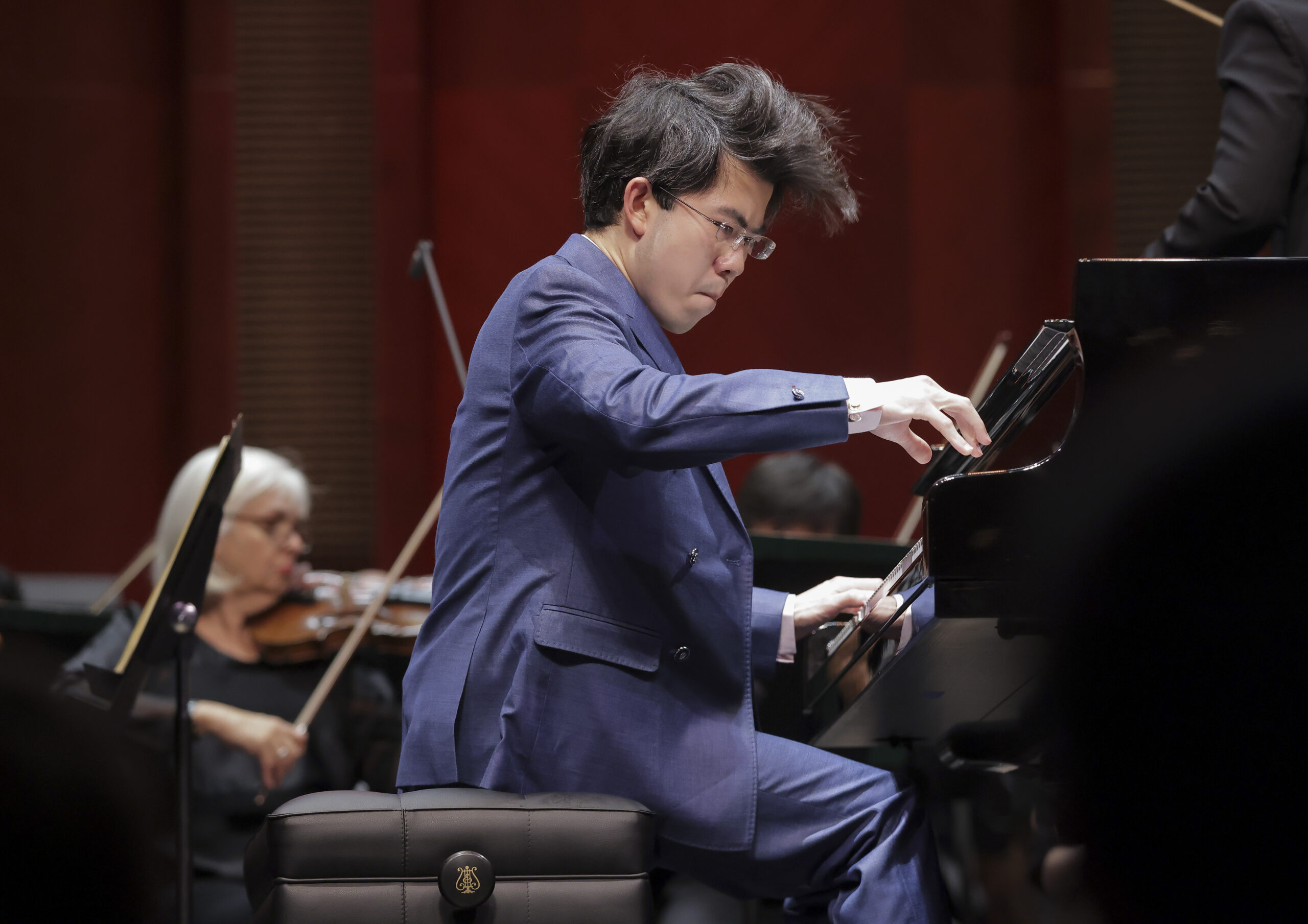 From the initial fiery cascading passages, Sham affirmed his command of the stage and of this historic moment for him. His confident, princely stage presence won over the crowd within moments. Mendelssohn’s concerto suited the candidate’s strengths: lovely phrasing, clear sound projection, and a brilliant and pearly sound. Sham was also the only pianist who had true chemistry with Alsop at the helm of the orchestra. The duo performed wonderful chamber music, blending the sounds of the piano with the orchestra in a bold, flawless, and passionate performance.